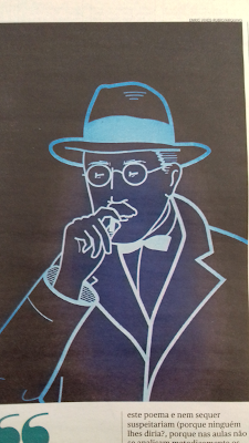 «[...] Sim, porque se a minha escrita é agora incerta, culpem o vencedor do Prémio Nobel, já que agora escrevo de acordo com as pausas breves de respiração – vírgulas – e as pausas longas – pontos finais – intercalado por vocativos no discurso indireto livre, Toda a gente sabe que o hóspede do 201, o doutor Reis, Lídia, foi intimado pela pvde. E, ora, dou por mim a pensar sintaticamente nas minhas frases: Mãe vírgula podes passar tracinho me a cesta do pão que é complemento direto nesta frase e eu que sou complemento indireto comprovado pelo deítico pessoal “me” e tu vocativo “Mãe” entre vír – Sim! – diz a minha mãe ao ver tracinho me entrar numa espiral de criação poética absurdamente dolorosa mas necessária e já sem me questionar, continuo assim, «’screvendo à beira-mágoa», rezando a “Prece”, espalhando a Mensagem de que «tudo vale a pena/Se a alma não é pequena» e acreditando que tirarei 20 no Exame «se a tanto me ajudar o engenho e arte» [...]